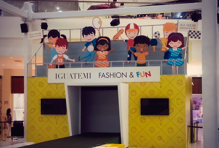 Desfile de moda infantil ocorrido na Praça Central do Shopping Iguatemi. A equipe Best Sign desenvolveu um cenário inovador em forma de arquibancada, bonecos de MDF e um adesivo simulando grama na passarela, além de toda a comunicação visual do evento.