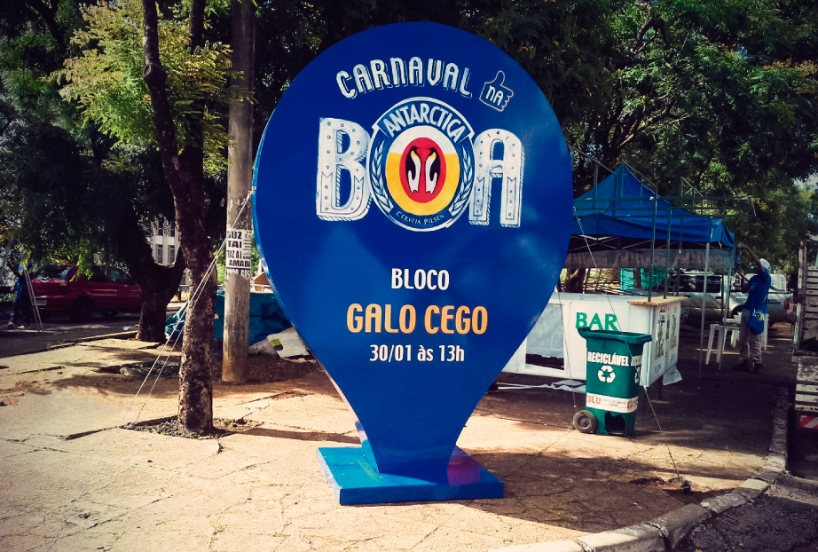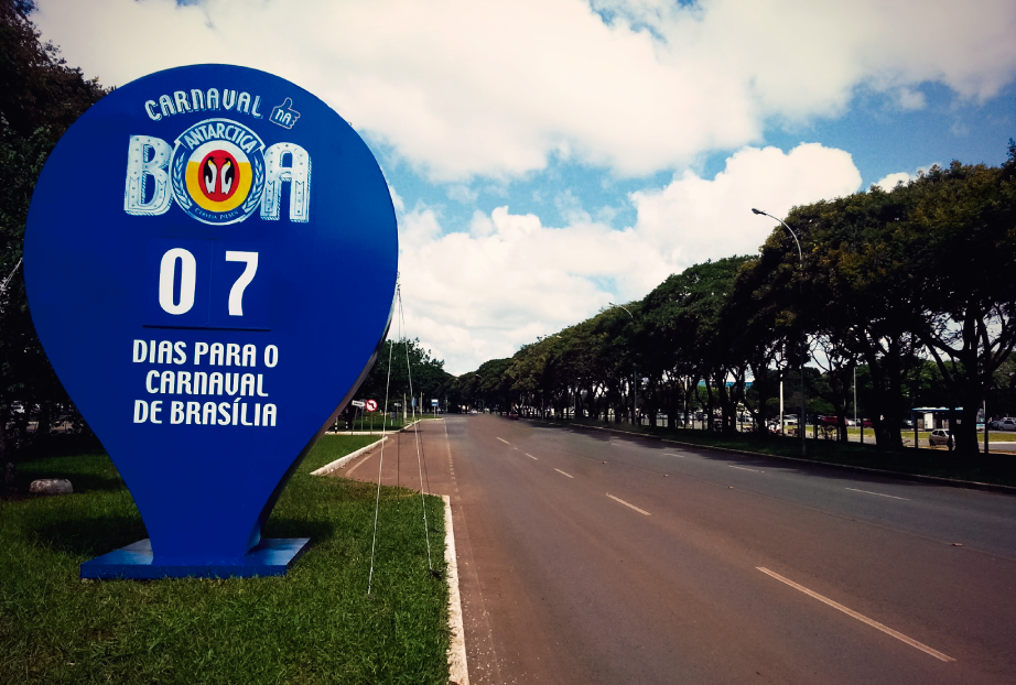 Peças de intervenção urbana, simulando um Pin do Google, como demarcação de onde ocorreu o carnaval de Brasília em 2016. A beleza, impacto visual e funcionalidade fizeram o sucesso do trabalho.